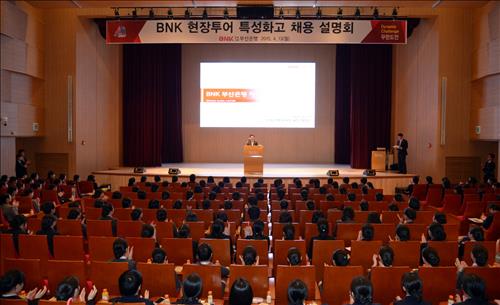 (부산=연합뉴스) 김상현 기자 = BNK금융그룹 부산은행이 특성화고교 출신 사무행원 채용을 매년 확대하고 있다.