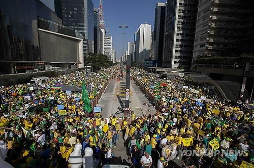 | △ 지난 12일(현지시간) 상파울루에서 벌어진 대규모 반정부 시위 (EPA=연합뉴스) |