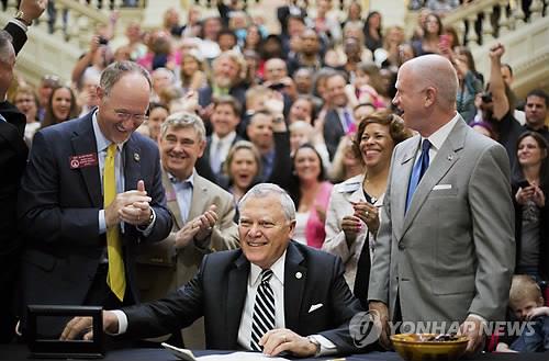 △ 네이선 딜 미국 조지아 주지사가 16일(현지시간) 의료용 마리화나의 사용을 허가하는 법안에 서명했다.
