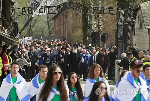 △ 지난 16일(현지시간) 폴란드서 열린 홀로코스트 추모 침묵 행진 (AP=연합뉴스)