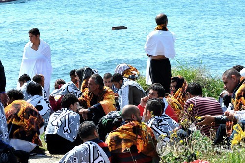 △ 난민선을 타고가다 그리스 남동부 에게해의 로데스 섬 앞 바다에서 구조된 난민들 (AP=연합뉴스)