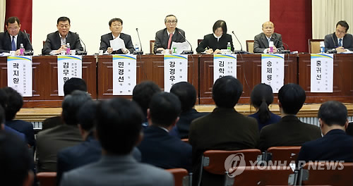 △ "경기도 버스 요금 오르나?" (수원=연합뉴스) 신영근 기자 = 21일 오후 경기도 수원 경기도의회에서 '2015 시내버스 요금조정' 도민 의견수렴을 위한 공청회가 열려 패널토의가 이뤄지고 있다. 2015.4.21 drops@yna.co.kr