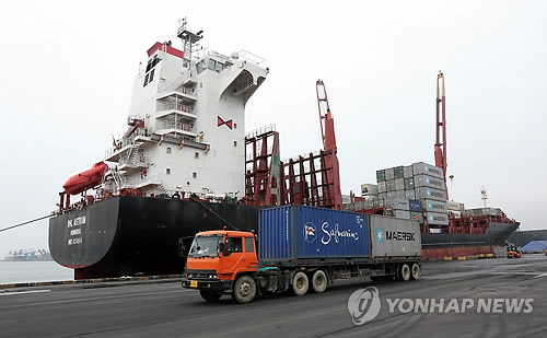 △ 컨테이너 선적 작업이 이뤄지는 강원 동해항 모습(자료사진)
