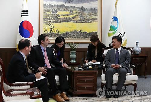 (서울=연합뉴스) 김호준 기자 = 홍용표 통일부 장관은 28일 정부종합청사에서 마크 리퍼트 주한 미국대사의 예방을 받고 "한미동맹은 군사동맹을 넘어 가치동맹으로 발전하고 있다"며 "인권, 평화, 환경, 한반도 평화 차원에서 양국 간 협력이 더 긴밀해지길 바란다"고 밝혔다.