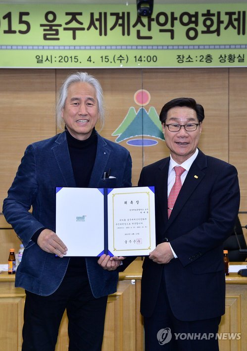 | △ 울주세계산악영화제 추진위원장에 박재동 교수 (울산=연합뉴스) 장영은 기자 = 울산시 울주군은 15일 군청에서 2015 울주세계산악영화제 추진위원회를 개최한 가운데 신장열 울주군수가 박재동 한국예술종합학교 교수(사진 왼쪽)에게 추진위원장 위촉장을 전달한 뒤 기념촬영을 하고 있다.2015.4.15 << 울산시 울주군 제공 >> young@yna.co.kr |