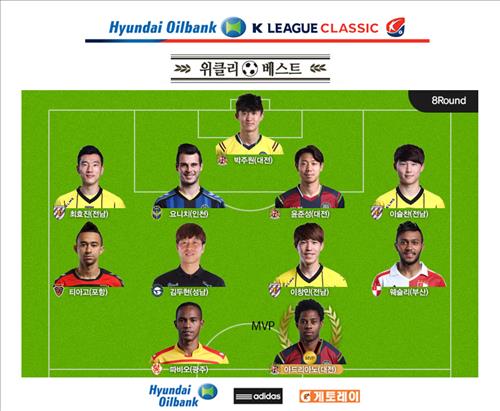 위클리 베스트 11 공격수로는 아드리아노와 파비오(광주)가, 미드필더로는 웨슬리(부산)·이창민(전남)·김두현(성남)·티아고(포항)가 선정됐다.