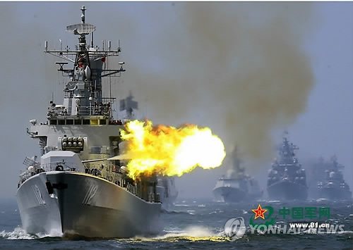 | △ 2014년 5월 전개된 대규모 중러 해상연합훈련(연합뉴스DB) |