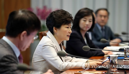 △ 수석비서관회의 발언하는 박 대통령 (서울=연합뉴스) 도광환 기자 = 남미 순방 이후 건강 악화로 안정을 취해온 박근혜 대통령이 4일 오전 청와대에서 열린 대통령 주재 수석비서관회의에 참석, 발언하고 있다.