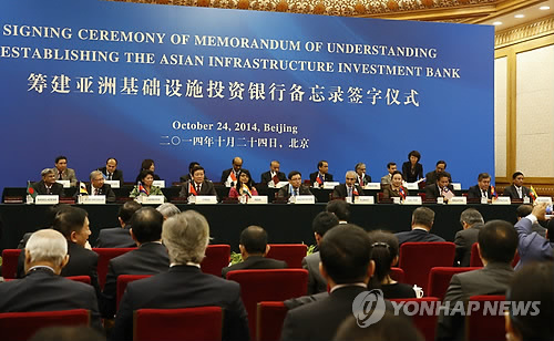 △ 중국 AIIB 설립 양해각서 체결식 (EPA=연합뉴스 자료사진)