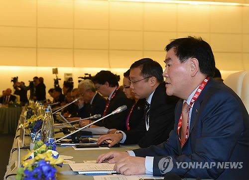 (<바쿠>아제르바이잔=연합뉴스) 이지헌 기자 = 최경환 경제부총리 겸 기획재정부 장관은 4일(현지시간) 아제르바이잔 바쿠에서 열린 아시아개발은행(ADB) 연차총회에 참석해 아시아의 지속가능한 발전을 위한 성장과 안정이 중요하다고 강조했다.