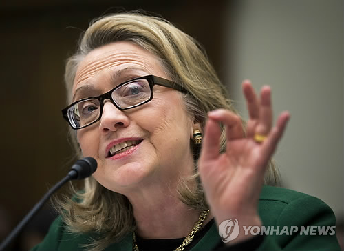 | △ (AP=연합뉴스) 힐러리 클린턴 전 미국 국무장관이 2013년 1월 상원 외교위원회 청문회에 출석, 대사를 포함 미국인 4명의 목숨을 앗아간 리비아 벵가지 영사관 피격사건에 대해 증언하고 있다. |