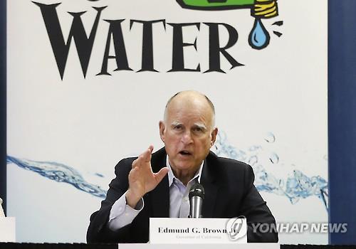 | △ (AP=연합뉴스) 제리 브라운 캘리포니아 주지사가 지난달 16일 열린 가뭄대책 회의 후 기자회견을 하고 있다. |