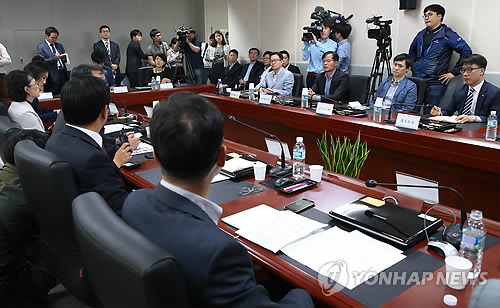 △ 지난 4일 오전 서울 강남구 도곡동 한국소비자원 서울지원에서 열린 '가짜 백수오' 논란 관련 간담회에서 홈쇼핑 업체 관계자들이 이남희 피해구제국장의 발언을 듣고 있다.
