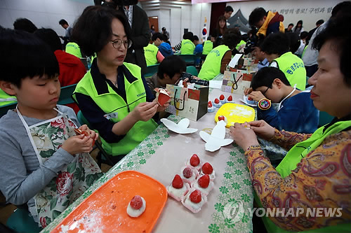 △ 점자 레시피로 만든 사랑 (서울=연합뉴스) 박동주 기자 = 어버이날인 8일 서울 종로구청 한우리홀에서 열린 '고맙습니다' 행사에서 한 시각장애아동이 부모를 위한 찹쌀떡을 직접 만들고 있다. pdj6635@yna.co.kr