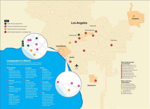 한국에 기반을 둔 비디오 게임 업체들이 LA 실리콘 비치로 대거 진출하고 있으며, 스마트폰 애플리케이션 창업기업들 가운데 LA 한인타운에 터를 잡은 곳도 상당수다.