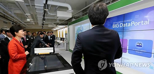 | △ 박 대통령 빅데이터 포털 시연 (서울=연합뉴스) 백승렬 기자 = 박근혜 대통령이 11일 강원도 춘천시 강원대학교 강원창조경제혁신센터를 방문, 빅데이터 포털을 시연해보고 있다. 2015.5.11 srbaek@yna.co.kr |