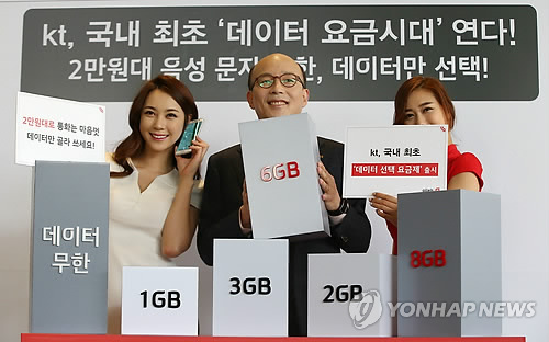 KT는 7일 음성과 문자는 무료로 제공하고 데이터 사용량에 따라 요금을 정할 수 있는 '데이터 선택 요금제'를 출시했다. SK텔레콤과 LG유플러스도 조만간 비슷한 데이터 중심의 요금제를 내놓을 계획이다.
