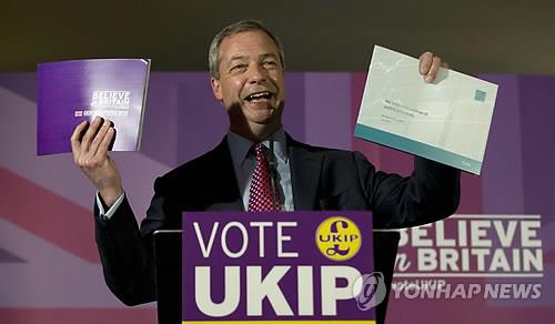 (런던=연합뉴스) 황정우 특파원 = 영국의 유럽연합(EU) 탈퇴를 주장하는 영국독립당(UKIP) 나이젤 파라지 당수가 사임을 철회하고 당수직을 유지한다.