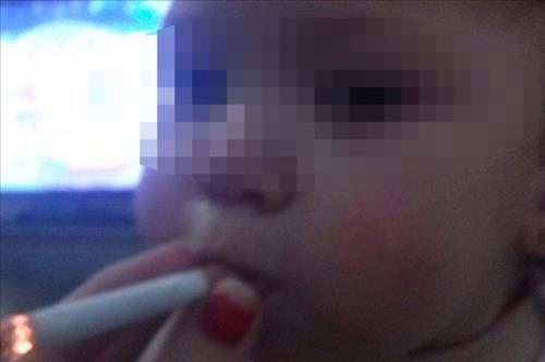사진 속에서는 빨간 매니큐어를 칠한 여자의 손이 불 붙은 담배를 아기 입술에 물려주고 있었으며, "1살인데 벌써 담배를 피운다. 사랑해. 너는 내 삶이야"라는 메시지가 거친 말투로 써있었다.