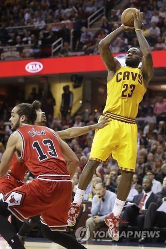 | △ 클리블랜드의 르브론 제임스가 슛을 날리고 있다. (AP=연합뉴스) |
