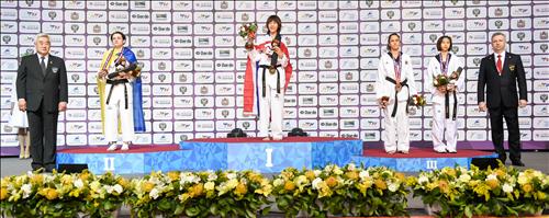 | △ 13일(현지시간) 러시아 첼랴빈스크에서 열린 2015 세계태권도선수권대회 여자 46kg급 시상식.<세계태권도연맹 제공> |