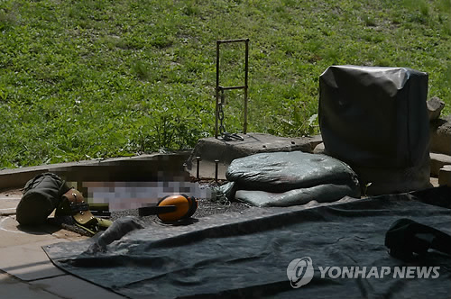 △ 총기 난사 가해자의 사격 현장 (서울=연합뉴스) 임헌정 기자 = 예비군 총기 난사 사건 발생 다음 날인 14일 오후 서울 내곡동 예비군훈련장 내 사고현장인 예비군사격장을 군 관계자가 공개하고 있다. 최모씨의 난사 사고 당시에는 총기를 옆이나 뒤로 향할 수 없도록 고정하는 장치가 제대로 사용되지 않았던 것으로 알려졌다.