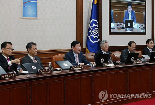 | △ 국무회의 (서울=연합뉴스) 전수영 기자 = 최경환 국무총리 직무대행이 19일 오전 정부서울청사에서 열린 국무회의를 주재, 모두발언을 하고 있다. swimer@yna.co.kr |