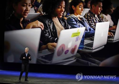| △ 지난 3월 애플의 맥북 미디어데이 행사(자료사진) |