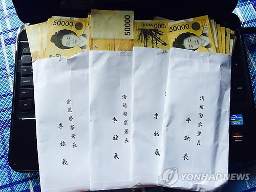 | △ 청도 송전탑 건설에 반대해 온 주민에게 전달한 돈 봉투. (연합뉴스 자료사진) |