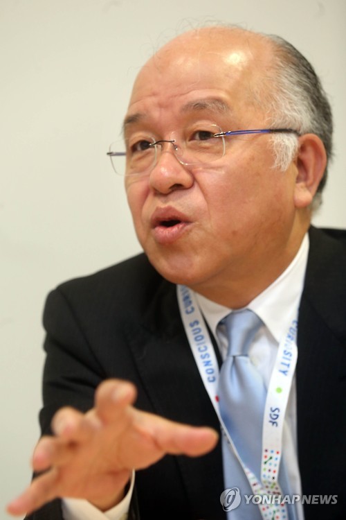 | △ 방한한 아사다 지로 (서울=연합뉴스) 김수진 기자 = 일본 소설가 아사다 지로가 21일 서울 동대문디자인플라자에서 연합뉴스와 인터뷰를 하고 있다. 2015.5.21 ksujin@yna.co.kr |