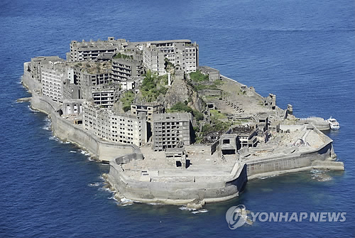 | △ 일본 정부는 후쿠오카현 기타큐슈의 야하타제철소, 나가사키현의 나가사키 조선소(미쓰비시 중공업) 등 현재 가동 중인 시설과 미쓰비시 해저 탄광이 있던 하시마 등 총 23개 시설을 산업유산으로 등재 신청했다. 이 가운데는 과거 5만7천900명의 조선인이 강제징용된 7개 시설이 포함돼 있다. 사진은 미쓰비시 해저 탄광이 있던 하시마(端島.일명 '군함도') (연합뉴스 자료사진) |