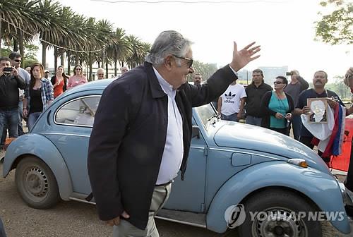 △ 1987년형 폴크스바겐 비틀을 타고 다니는 호세 무히카 전 우루과이 대통령 (AP=연합뉴스)
