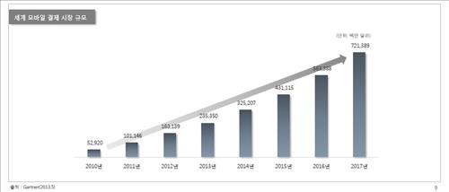시장조사업체 가트너에 따르면 세계 모바일 간편결제 시장 규모는 매년 30∼40% 성장할 것으로 전망된다.