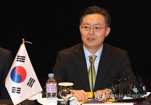 △ 모두발언하는 황준국 한반도평화교섭본부장 (서울=연합뉴스) 임헌정 기자 = 황준국 외교부 한반도평화교섭본부장이 27일 서울 소공동 롯데호텔에서 열린 한·미·일 북핵 6자회담 수석대표 회의에서 모두발언을 하고 있다. kane@yna.co.kr