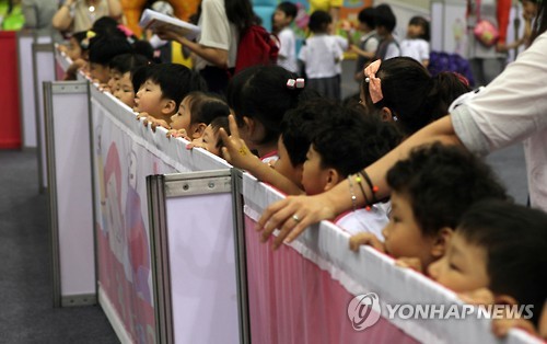 | △ 차례 기다리는 어린이들…'굿게임쇼코리아 2015' (고양=연합뉴스) 김승두 기자 = 국내 최대 규모의 게임축제인 '굿게임쇼 코리아 2015'가 29일 경기도 고양 킨텍스 제2전시관에서 개막했다. 온가족 체험관에서 순서를 기다리는 어린이들이 놀이를 궁금해하며 쳐다보고 있다. 2015.5.29 kimsdoo@yna.co.kr |