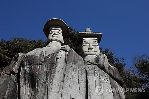△ 경기도 파주 용미리 '마애이불입상' (연합뉴스 자료사진)