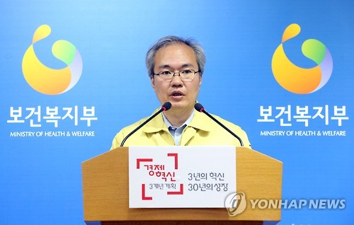 | △ 메르스 추가 환자 2명 발생, 브리핑 (세종=연합뉴스) 배재만 기자 = 권준욱 보건복지부 공공보건정책관이 29일 오전 정부세종청사 보건복지부 공용브리핑룸에서 메르스 일일상황점검회의 결과를 브리핑하며 금일 오전 7시 현재 2명의 신규 환자를 확인했다고 밝히고 있다. 현재까지 총 환자 수는 9명이다. |