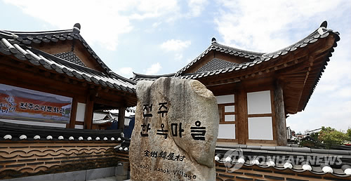 | △ 전주 한옥마을 표지석 (전주=연합뉴스) 전북 전주시 전주소리문화관 옆에 서 있는 전주 한옥마을 표지석. 전주 한옥마을은 연간 관광객 500만명이 넘어서는 전북 관광의 1번지다. 전통 문화를 체험할 수 있고, 동·서양 건축물을 한 눈에 볼 수 있어 관광객들의 사랑을 받고 있다. 2015.5.9 <<전주시>>.DB. chinakim@yna.co.kr |