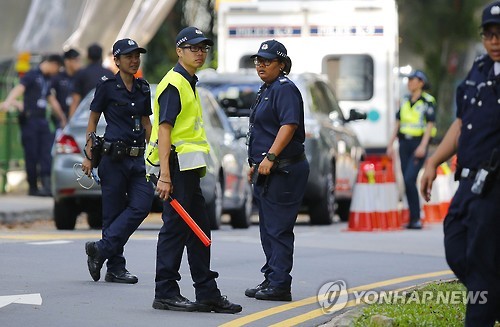(싱가포르 AFP=연합뉴스) 제 14차 아시아안보회의(일명 샹그릴라 대화)가 열리고 있는 싱가포르 샹그릴라호텔 인근에서 31일 새벽 마약이 관련된 것으로 추정되는 사건으로 한 남성이 경찰에 사살됐다.
