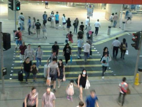 홍콩을 거쳐 중국으로 간 한국인 메르스 감염 확진자 K(44)씨와 접촉했을 것으로 의심되는 18명에 대한 격리조치가 전날 이뤄졌지만, 대부분 행인은 평소와 다름없는 차림이었다.