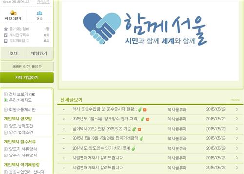 소통광장(cafe.naver.com/seoultaxidriver)은 네이버 카페 내에 개설됐다. 누구나 가입을 신청하면 관리자 승인을 받은 뒤 이용할 수 있다.