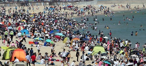 (부산=연합뉴스) 조정호 기자 = 때이른 무더위가 계속된 가운데 전국 최대 피서지인 해운대를 비롯해 부산의 해수욕장 3곳이 한 달 일찍 열고 손님맞이에 나섰다.