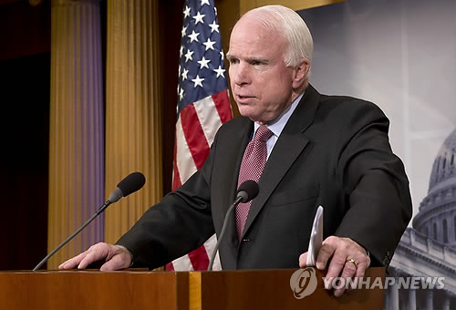 △ 1일(현지시간) 미국 의회에 따르면 존 매케인(공화·애리조나) 상원 군사위원장(사진)이 지난달 발의한 국방수권법(S. 1376) 본문에는 미 국방부를 상대로 '세계 핵환경에 대한 평가'를 요구하는 조항이 포함됐다. (AP=연합뉴스 자료사진)