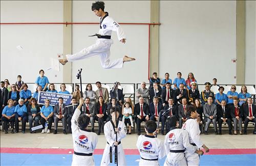 이번 한체대 시범단의 공연에는 파라과이 경찰대 학생들과 한국국제협력단(KOICA) 소속 파라과이·콜롬비아·페루·볼리비아의 태권도 봉사단원들도 참여해 의미를 더했다.