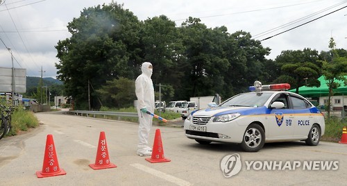 △ (순창=연합뉴스) 백도인 기자 = '중동호흡기증후군(메르스)' 양성반응 환자가 발생한 전북 순창군 A 마을의 출입을 5일 경찰과 방역 담당자들이 통제하고 있다. 전북도는 이 마을에 사는 B(72·여)씨가 1차 검진에서 메르스 양성 판정을 받자 확산을 막기 위해 통제에 들어갔다. 국내에서 메르스 확산 방지를 위해 마을이 통째로 출입 통제된 것은 처음으로 알려졌다. 2015.6.5 doin100@yna.co.kr