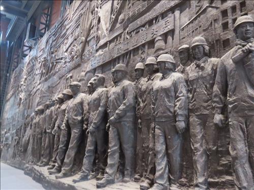 | △ (안산=연합뉴스) 홍창진 특파원 = 중국 랴오닝성 안산 소재 안강강철집단공사(안강)는 1949년 중화인민공화국 건립 후 67년동안 경제개발의 기반이 되는 철강을 생산해 왔으며 지금도 제2의 제철소 위치를 지키고 있다. 사진은 안강 전시관 1층에 마련된 '안강 중대사 조각'. realism@yna.co.kr |