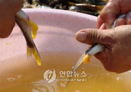 △ 은어 알 인공수정 장면 <<연합뉴스 DB>>