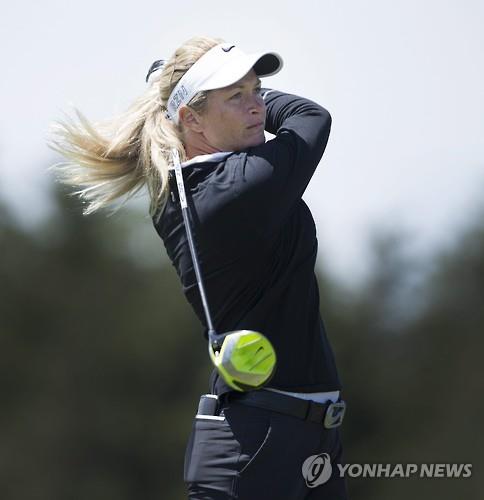 | △ 3라운드까지 1위를 달리고 있는 수잔 페테르센의 티샷 모습.(AP=연합뉴스) |