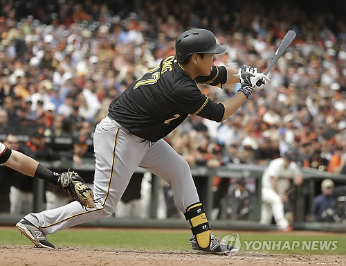 (서울=연합뉴스) 배진남 기자 = 미국프로야구 피츠버그 파이리츠의 강정호(28)가 대타로 출전해 내야땅볼로 주자를 진루시켰다.
