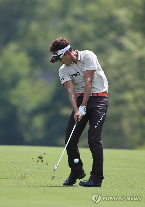| △ 세컨 아이언샷하는 이태희 (서울=연합뉴스) 7일 경기도 여주 360도 골프장에서 열린 넵스 헤리티지 2015 4라운드 8번홀에서 이태희가 세컨 아이언샷을 하고 있다. |